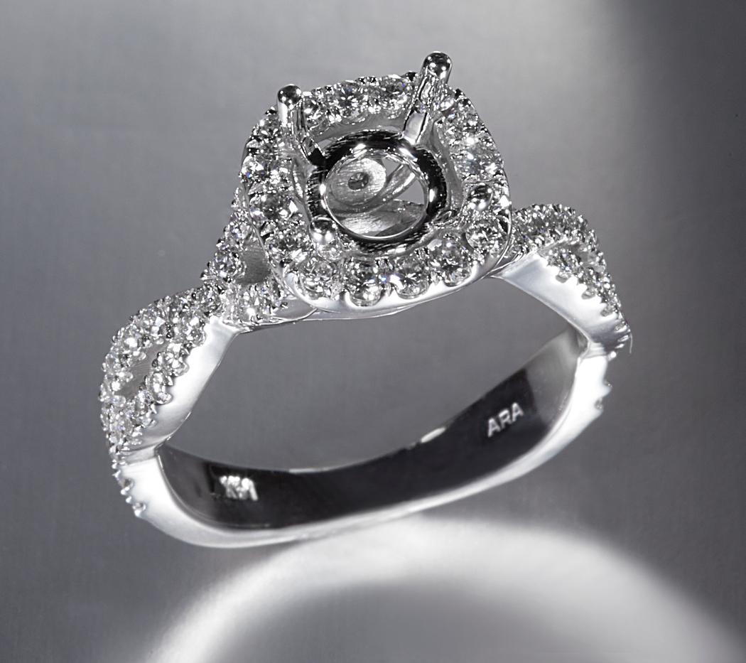 / 14 kt White Gold Diamond Halo Engagement Ring